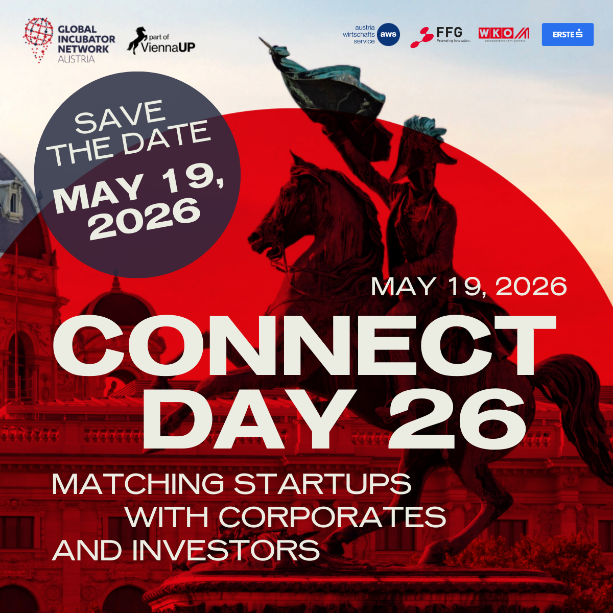 Am 19. Mai 2026 ist es wieder so weit: Der Connect Day 26 bringt hochqualitatives Matchmaking nach Wien und vernetzt Sie mit innovativen Startups, führenden Unternehmen, Investorinnen und Akteurinnen des österreichischen und internationalen Innovationsökosystems. Die Teilnahme ist kostenfrei, aber es ist eine Bewerbung erforderlich.