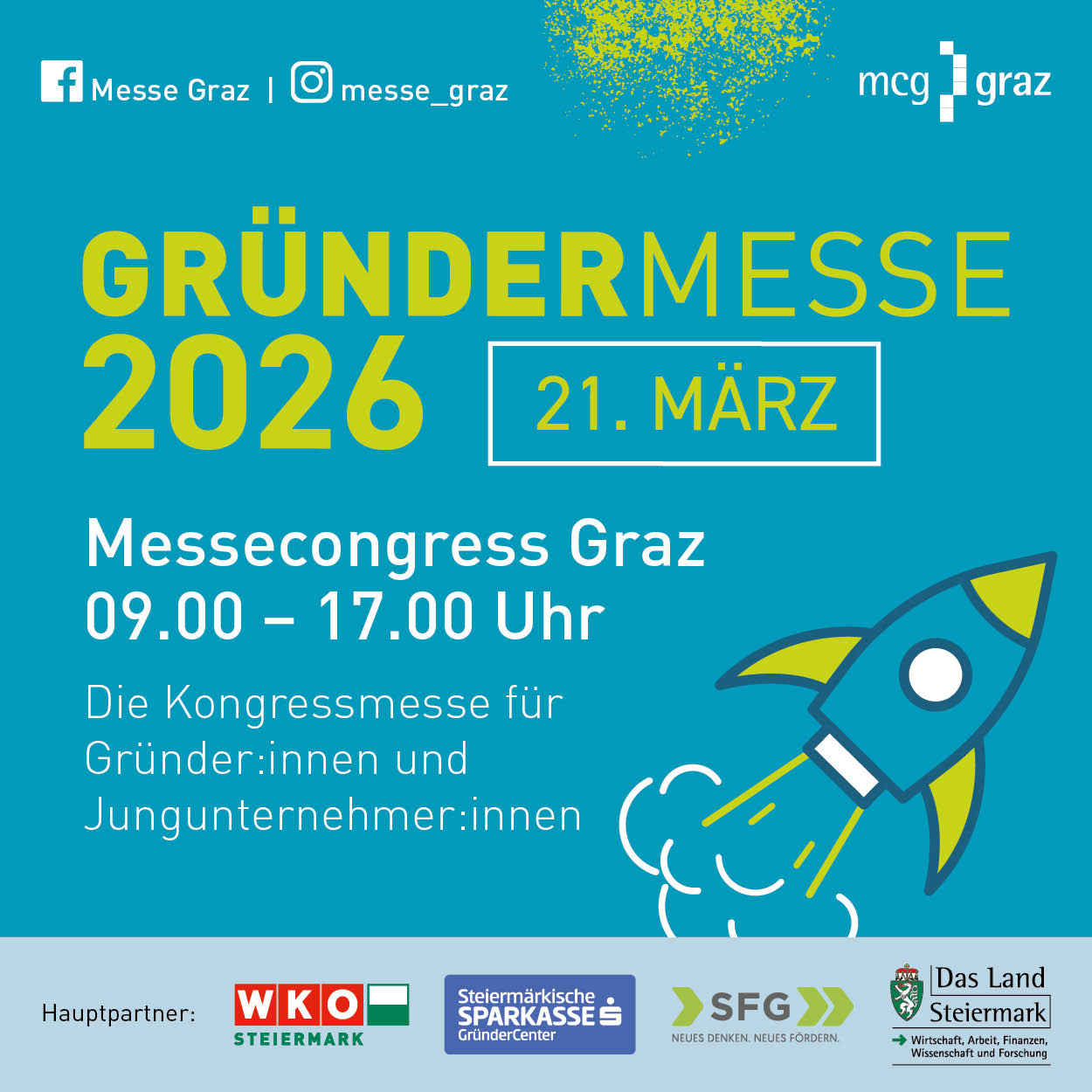 Hier kostenlos registrieren und mehr über die Gründermesse Graz erfahren.